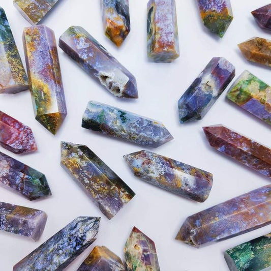 Regular price From $22.50 USDRegular priceUnit price / per$80.00 USDSale price From $22.50 USDNew Hot sale Natural Crystal Crafts healing stones colourful pink moss agate point for Home Decoration